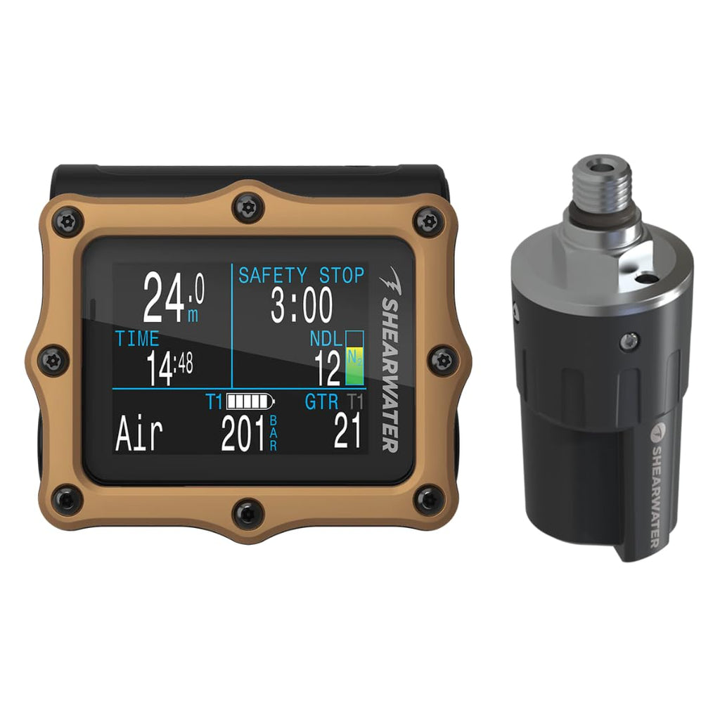 A strong vibration and customizable alert system draws attention at critical moments of the dive. Air integration with up to four Shearwater transmitters allows room to grow from a first computer to a powerful advanced technical diving solution. Power is delivered using a simple user-changeable single AA battery with a familiar ergonomic compact form factor.