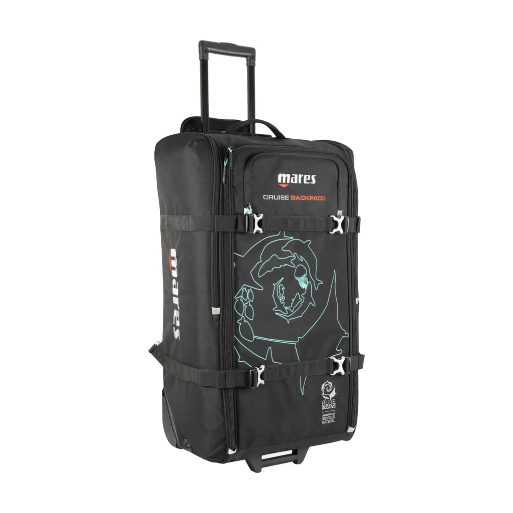 Optimize your dive travel with the Cruise Backpack, now eco-friendly in r-PET. This 120-liter bag boasts a telescopic handle, large sturdy wheels and adjustable compression straps for compact storage. The interior features tie-down straps, an inspection zipper and ultralight buckles. Enjoy comfort with padded shoulder straps and the air mesh handle. The bag includes an external fin pocket with drainage, side handles and A.T.O. for hassle-free air travel.