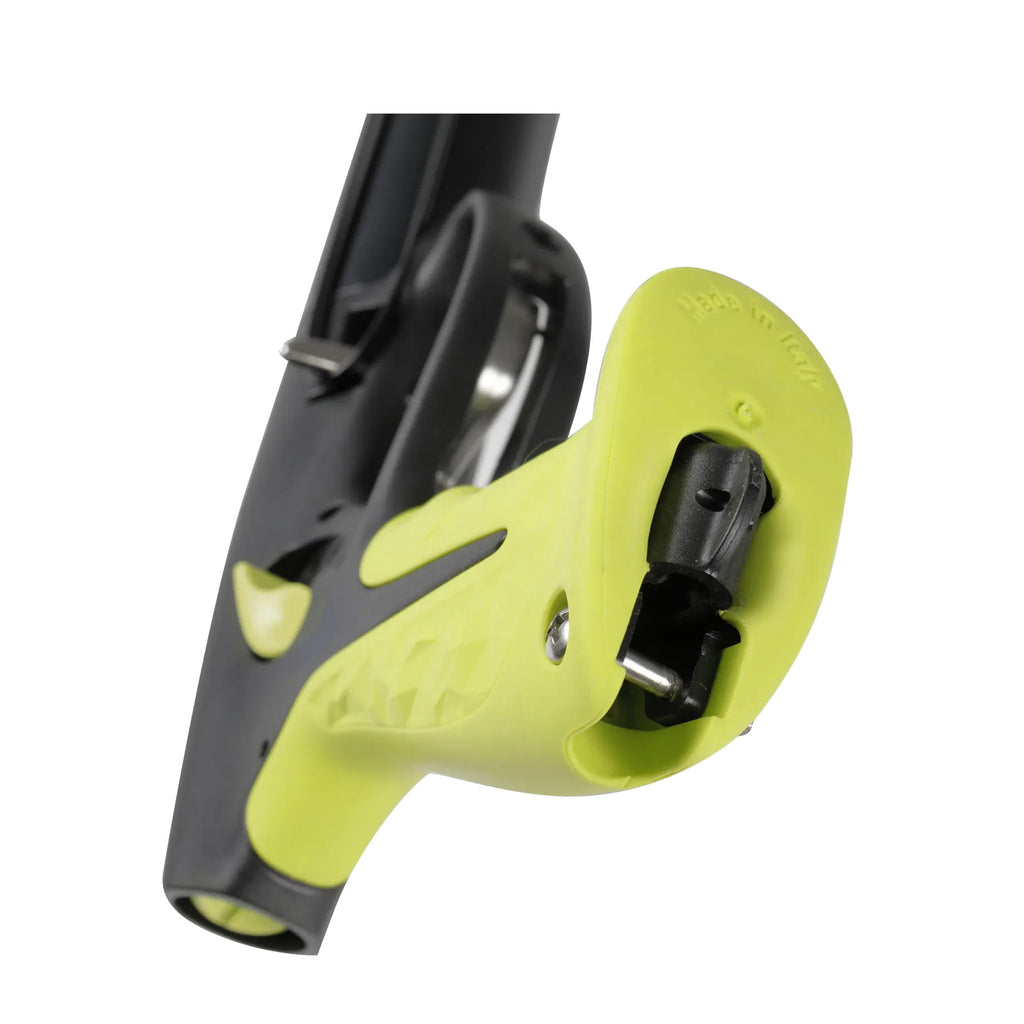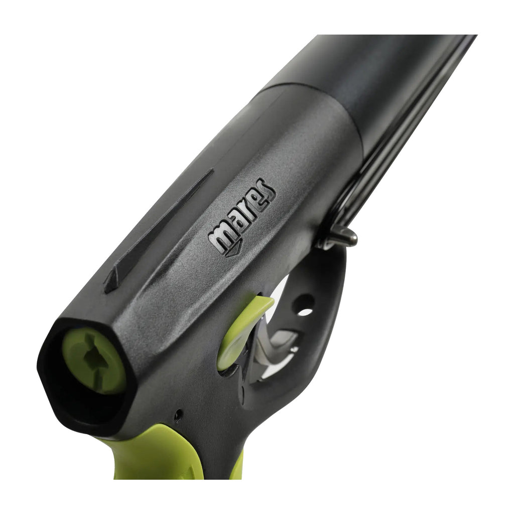 Includes a handle with a yellow neon-colored soft grip for quick identification if it falls to the seabed. The safety catch is also in the same color as the handle for quick identification.