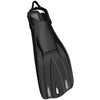 Open heel “boot-fit” design features a replaceable self-adjusting bungee heel strap that allows for a versatile fit and makes the fin easy to don and doff.