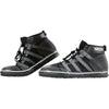 Rigid rubber sole with durable toe and heel caps, secure lacing