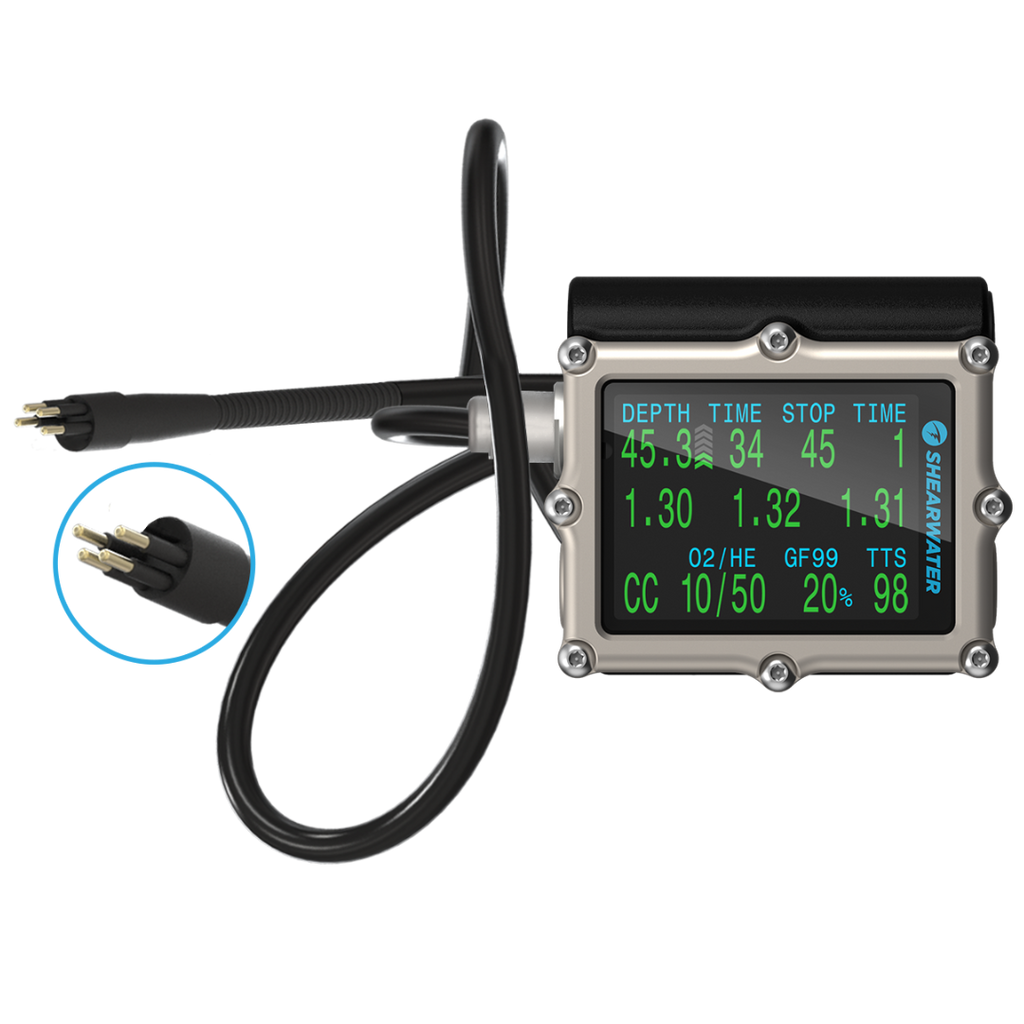 Air integration is standard with up to four Shearwater transmitters to customize a solution from open circuit to rebreather and bailout gas pressure monitoring.