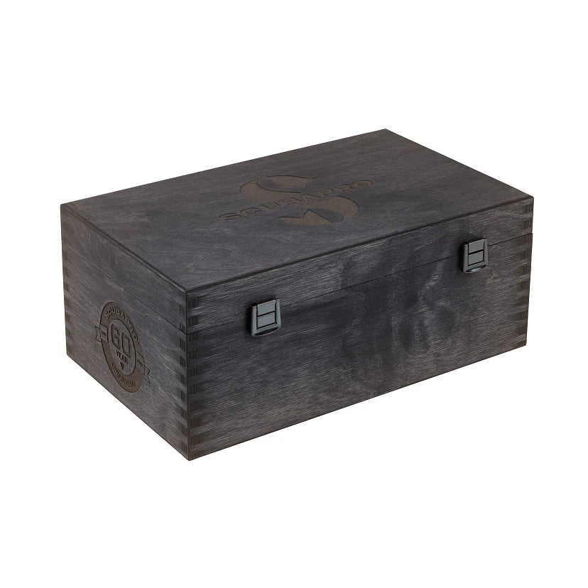 This special limited edition regulator comes in a FSC-certified wooden box engraved with both SCUBAPRO and 60 Year Anniversary logos. A black anodized laser engraved aluminum tag carrying the progressive serial number matching the regulator is also included, highlighting the exclusivity of this limited edition regulator for collectors.