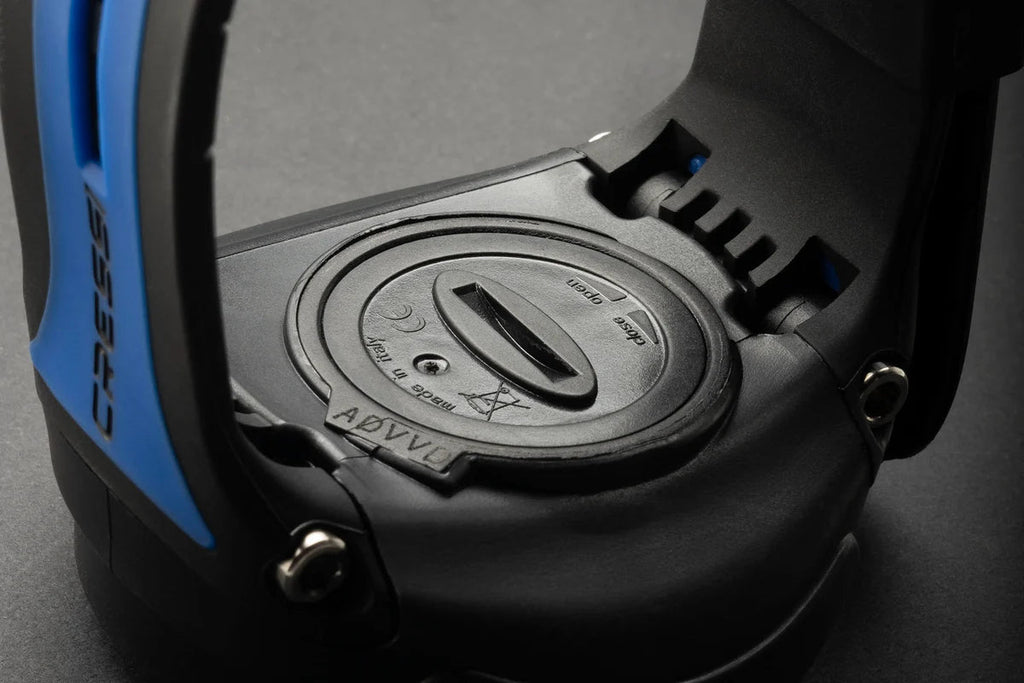 Battery life indicator. The device is powered by a long-lasting CR2430 button battery which can be replaced by an authorized Cressi center by verifying perfect watertightness.